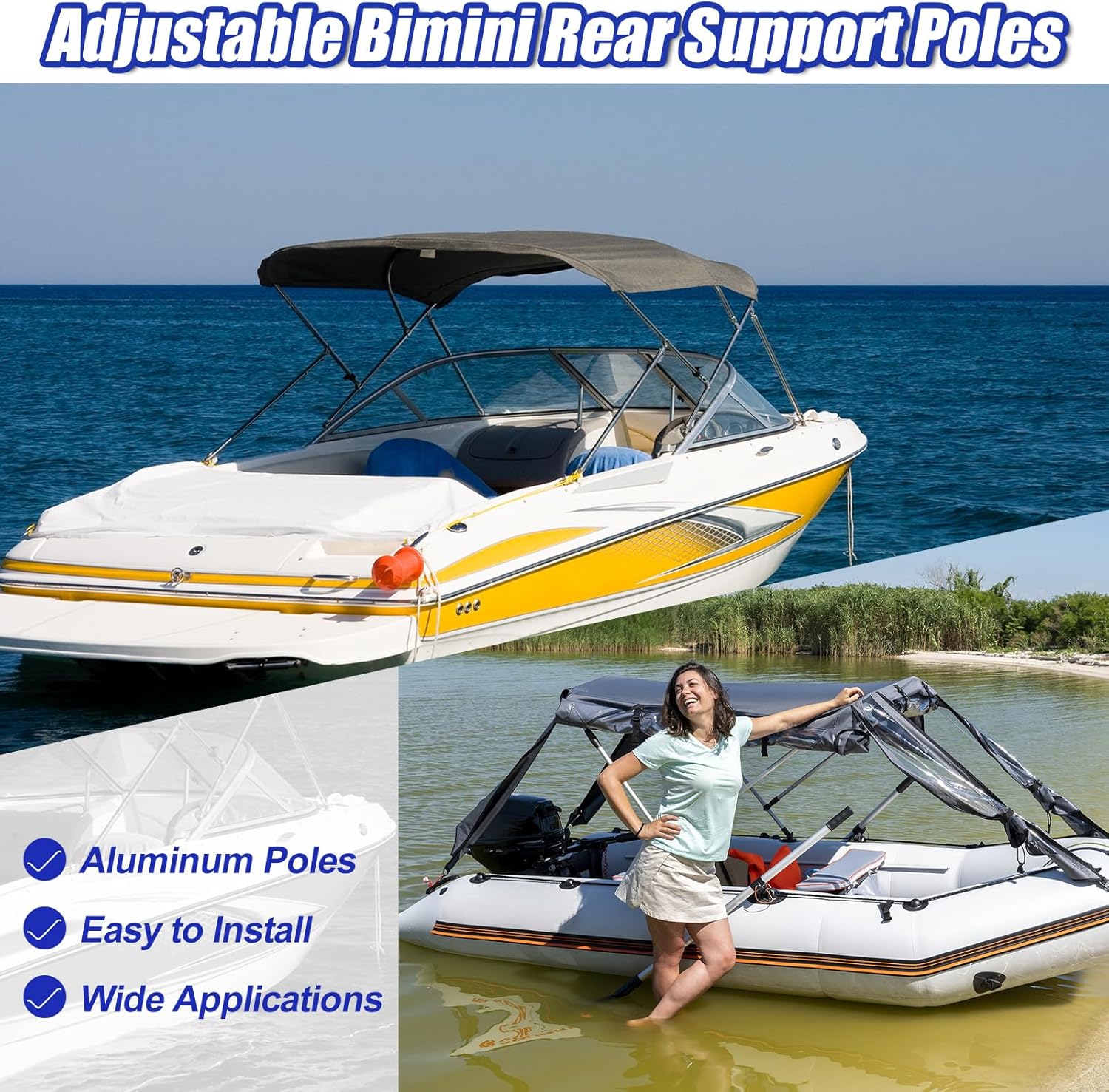 Features: Durability under harsh conditions: The strength and durability of these adjustable support rod materials, which includes nylon webbing straps, ensures that they can withstand tough marine conditions. The reinforced stainless steel components add to their longevity under these demanding conditions, making them an good choice for your boat. Assured longevity: The exceptional strength and durability of the adjustable boat support rods ensure that they will not break during long term use. Their design make they can withstand substantial stress, ensuring your boat awning remains stable and secure for an extended period. Specifications: Material: aluminum Color: silver black Size: aluminum rods between 26'' and 42'' Package includes: 2 x Aluminum rods 2 x Adjustable boat top straps 2 x Stainless steel eye straps 8 x Matching stainless steel screws Notes: Manual measurement, please allow slight errors on size. The color may exist a slight difference due to different screen displays.