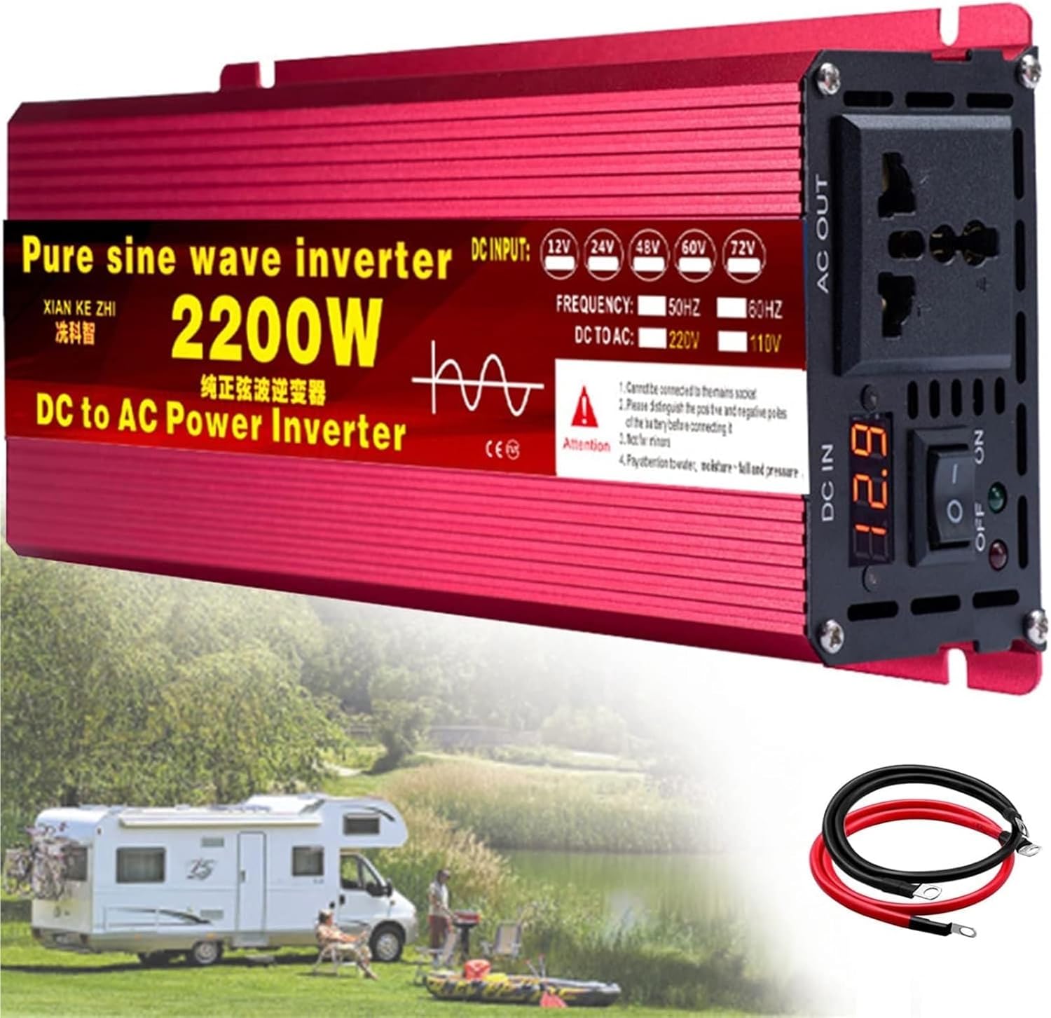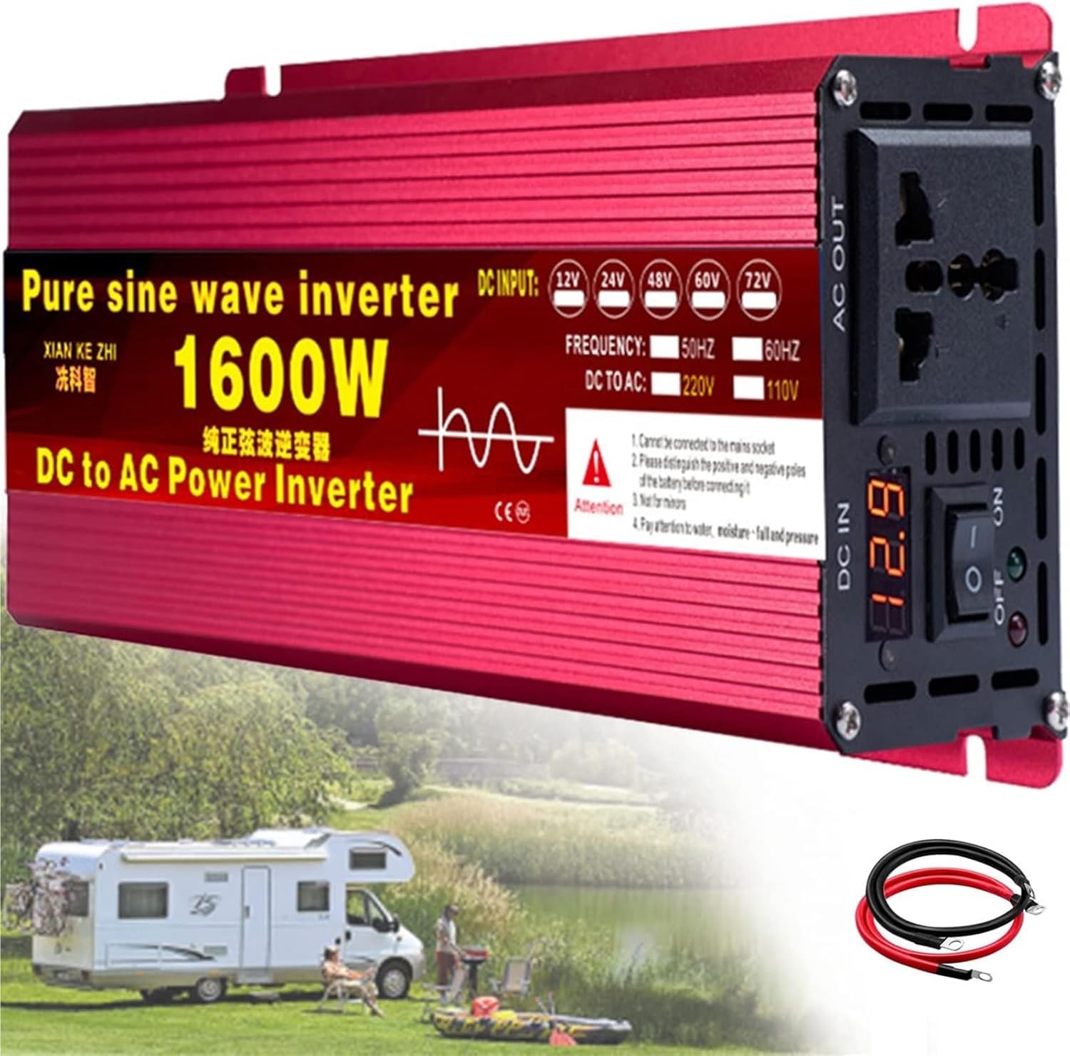 Are you concerned about power outages during your travels or at home? Our Pure Sine Wave Inverter is designed to enhance your quality of life by providing reliable power solutions at an affordable price. Ideal for use in your car, boat, caravan, or during outdoor adventures, this inverter ensures you can keep your essential devices running smoothly whether at home or on the go.With our inverter, you can charge smartphones, laptops, appliances, TVs, and camping equipment effortlessly. It is compatible with various battery input voltages, including 12V, 24V, 48V, and 60V, allowing you to choose the right model for your needs.Key Specifications:- Name: Pure Sine Wave Inverter - Shell Material: Durable Aluminum-Magnesium Alloy Cooling Shell- Output Waveform: Pure Sine Wave- Input Voltage: Options of 12V, 24V, 48V, 60V- Output Voltage: 110V-130V / 220V-240V- Peak Power: 1600W / 2200W / 3000W- Rated Power: 800W / 1100W / 1500WProduct Features:- Comprehensive protection against overload, over-voltage, over-temperature, and short circuits.- Equipped with a built-in smart fan for quiet operation, reducing heat and optimizing performance.- Ultra-compact and lightweight design, perfect for holidays, business trips, and camping excursions.Important Notes:1. Select an inverter that matches the voltage of your battery.2. Always ensure the inverter switch is off before connecting.3. Securely tighten the positive (+) and negative (-) connections to prevent overheating due to loose contacts.4. Avoid overloading; for inductive loads, choose an inverter with a continuous output power 3-7 times higher than the device's power.Experience peace of mind and convenience with our Pure Sine Wave Inverter, your ultimate power solution for life's adventures.