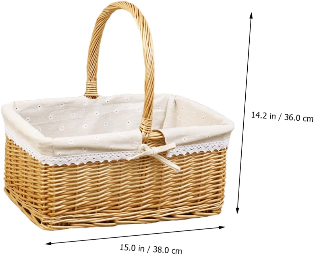 Package Include 1 x Willow Woven Basket Characteristics -Material: Willow and cloth Tote Basket -Color: As Shown Creative Fruit Basket -Size: 38.00X28.00X36.00cm/14.93X11.00X14.15in Willow Woven Storage Basket - Smooth surface without burrs, not hurting your hands and easy to clean Weaving Basket. - The non-slip design at the bottom makes it stable and not easy to fall Kitchen Storage Basket. - No staining, no paint, safe to use and long serving life Simple Fruit Holder. - Suitable for various occasions, creative restaurants, hot pot restaurants, hotels or homes Wicker Basket. - Perfect for most events, such as Christmas, Thanksgiving, party, banquet, wedding, afternoon tea, etc Square Willow Basket.Goods DescriptionTote Basket The woven basket is perfect for adding a and some natural color to your interior.Food Basket storage container for fruit, flower, etc.Square Willow Basket Natural and simple design, very durable and practical.Household Storage Holders A wonderful helper for household decoration