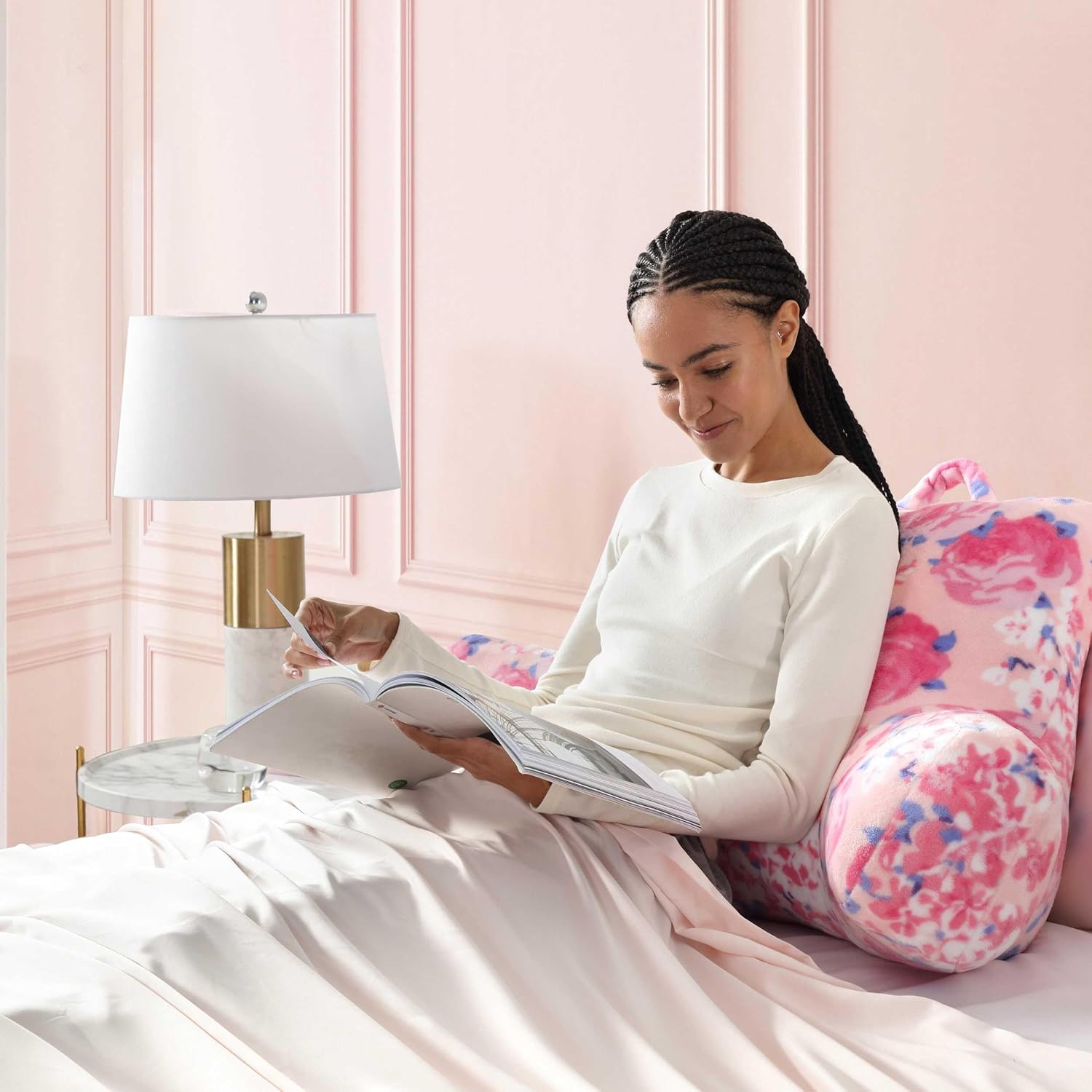 Why settle for ordinary decor when you can have bold, playful, and unmistakably Betsey? bring bright, romantic energy to your space with the Betsey Johnson xox floral backrest decorative pillow, featuring a lush mix of pink and purple blossoms scattered across a soft, dreamy backdrop. Designed for comfort and style, this supportive backrest silhouette offers cozy arm bolsters and a top handle, making it perfect for reading, lounging, studying, or relaxing in bed. The vibrant floral artwork adds movement, personality, and signature Betsey charm instantly refreshing any corner of your room. Whether paired with Solids or layered with other patterned throw pillows, this accent pillow elevates your room décor with a lively, expressive touch. Plush yet lightweight, it transforms any seating spot into a cheerful Betsey-inspired retreat. Spot clean only for easy care and long-lasting everyday beauty.