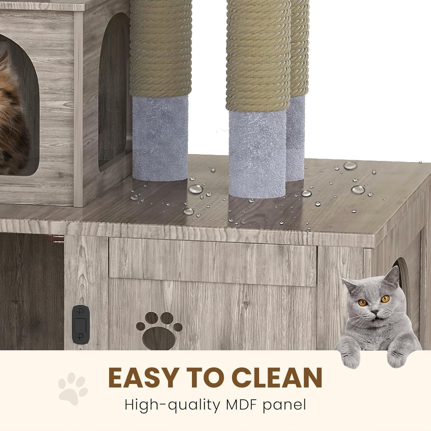 | Item Type Name | Recaceik Cat Litter Box Enclosure with Cat Tree, Hidden Cat Washroom Furniture with Divider, Wooden Cat House with Platform, Scratching Post and Soft Plush Perch, Indoor Pet Cabinet, Gray |