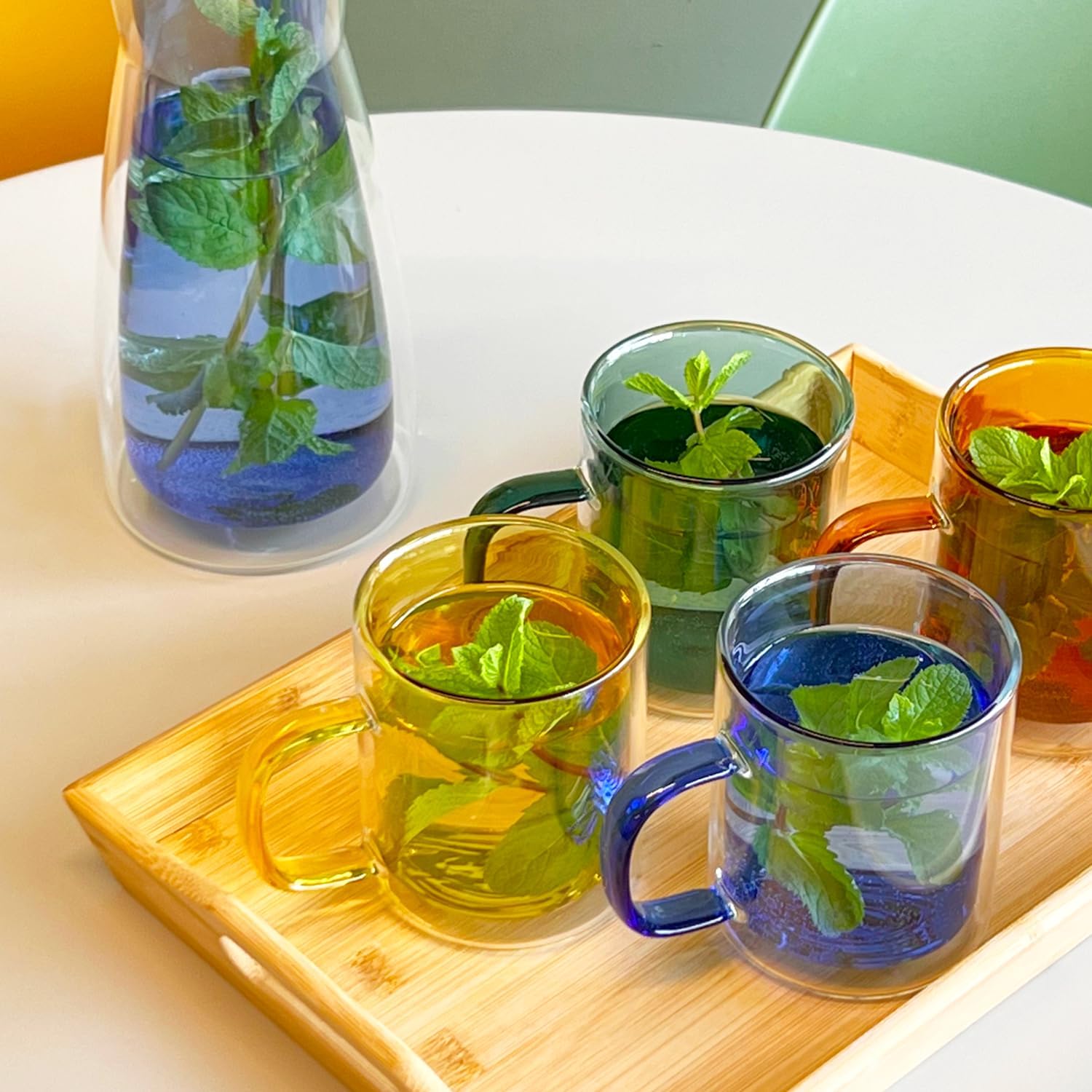 Whether you need a pop of color in your morning coffee routine, or you want the perfect give, the Cloudnola set of 4 colorful double wall insulated mugs with put a smile on anyone's face. Quality mouth blown glass that will help keep your drink warm and keep your hands protected from the heat. Large size for lattes, cappucinos, a large cup of tea, or any other hot beverage. Comes in a gift style box for easy gifting.