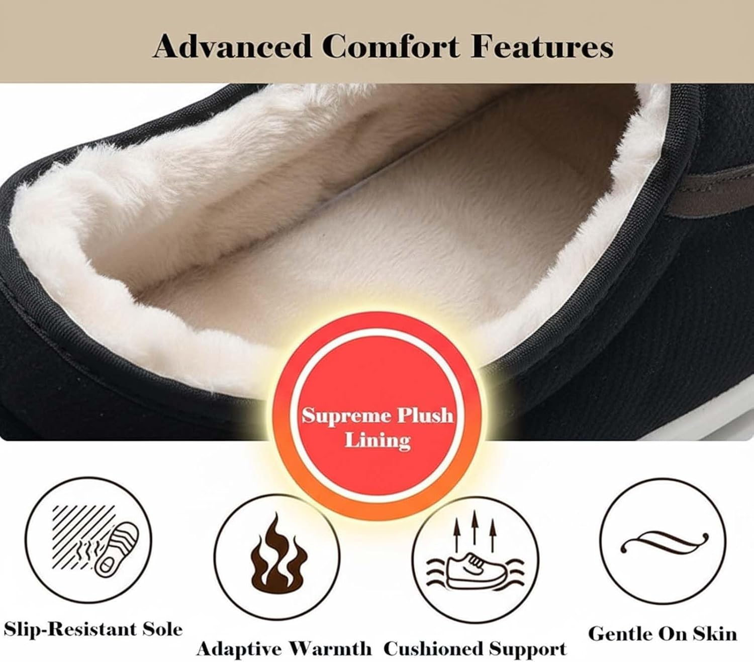 Experience gentle, all-day support designed for sensitive feet. These thoughtfully engineered shoes are developed for individuals seeking relief from foot discomfort, swelling, and specific conditions such as diabetes, arthritis, edema, hypertension, and plantar fasciitis. They also serve as a go-to option for mature users looking for a breathable, lightweight, and supportive everyday shoe. Specifications Product Name: Comfort-Care Therapeutic Shoes Upper Material: Soft Striped Fleece Sole Material: Reinforced Rubber with Advanced Grip Key Features & Benefits Easy-On, Stress-Free Design: An extra-wide opening paired with a double-depth interior allows for effortless wear and removal, offering particular convenience for those with swollen feet or reduced mobility. Softness & Comfort: The plush striped fleece lining creates a cozy yet well-ventilated environment, delivering soothing warmth. Confident & Balanced Stride: Engineered with a trusted slip-resistant outsole that improves surface grip, these shoes help you walk with greater assurance and steadiness on different terrains. Care & Sizing Care Instructions: To maintain the shoe's structure and comfort, we recommend hand washing only. Please avoid machine washing. Sizing Guidance: For optimal fit—especially for wider feet—select one full size larger than your usual size.