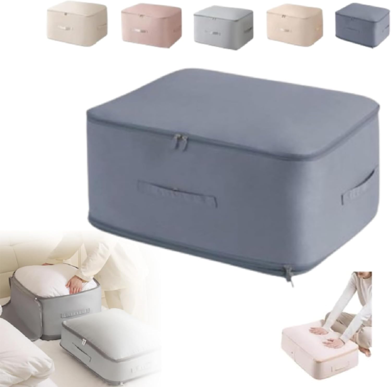 Upgrade Space Saving Self Compression Organizer - Compression Duvet Storage Bag Large Capacity - Self Compression Moving Organizer Bags Heavy Duty Moving Bags for Comforters. Specifications: Color: Beige, Blue, Gray, Pink, Apricot SIZE: Large - 15.75*11.8*7.08in/40*30*18cm X-Large - 21.26*16.53*23.62in/54*42*60cm Package Includes: 1/2 * Ultra Space Saving Self Compression Organizer It just works like a vacuum sealer. You just need to: 1. Fold your clothes and quilt, and flatten them. 2. Pack clothes in the cubes and zip the normal zipper. 3. Put a finger on the back of the zipper in the space when compressing the packing cubes in case the zipper get stuck in fabric.