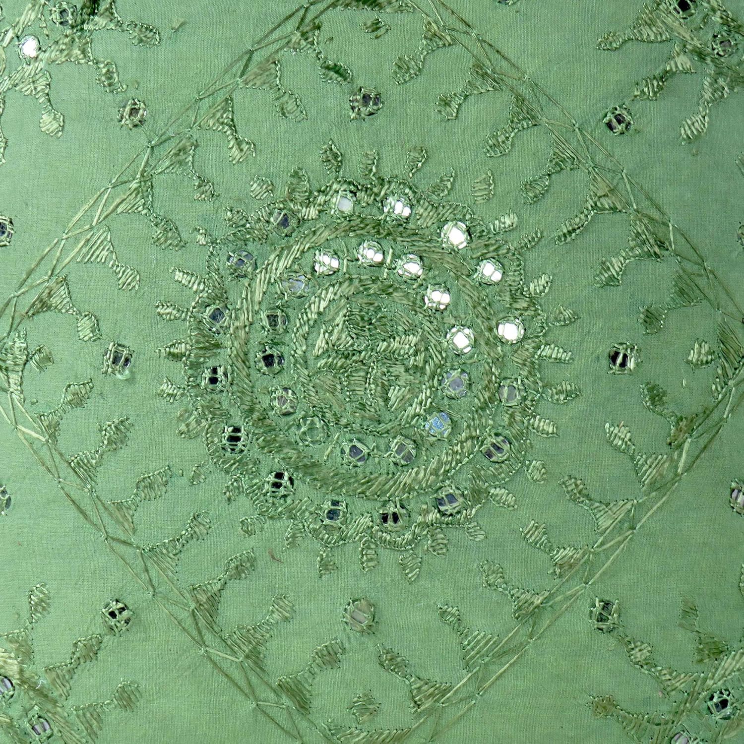 Intricately embroidered Pakka pillow cushion cover. Vibrant with colors, this pillow features dazzling embroidery with mirrors. Backside is solid cotton with zipper closure. Get a few to toss around the house to imbue it with color, coziness and comfort! This stunning cushion will add so much style and character to any room in your house and is a perfect way to enhance your home decor setting! Get this beautiful item now directly from India at a price you won't find anywhere guaranteed! Reverse: Solid color with zipper closure Color: Black Size: 16 X 16 in. (40 X 40 cm) Material: Cotton and Mirrors Weight: 0.150 Kg ( 5.29 Ounce ) Place of Origin: Jaipur - India How to Fill: For best results use an Eyes of India insert. You can find them by searching for Eyes of India inserts in the search field above. Care: Hand wash separately with like colors; dry in shade Note: Cover only; insert not included