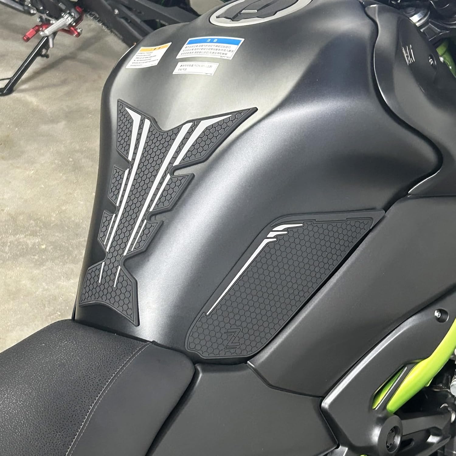 Tailored to create for Kawasaki Z900 2017-2025 Motorcycle Gas Tank Protector Side Fuel Tank Sticker Accessory Parts Knee Pad Anti-Slip Using PVC rubber material to maintain durability and softness, and adopting honeycomb design to enhance strong grip. It's simply elegant...