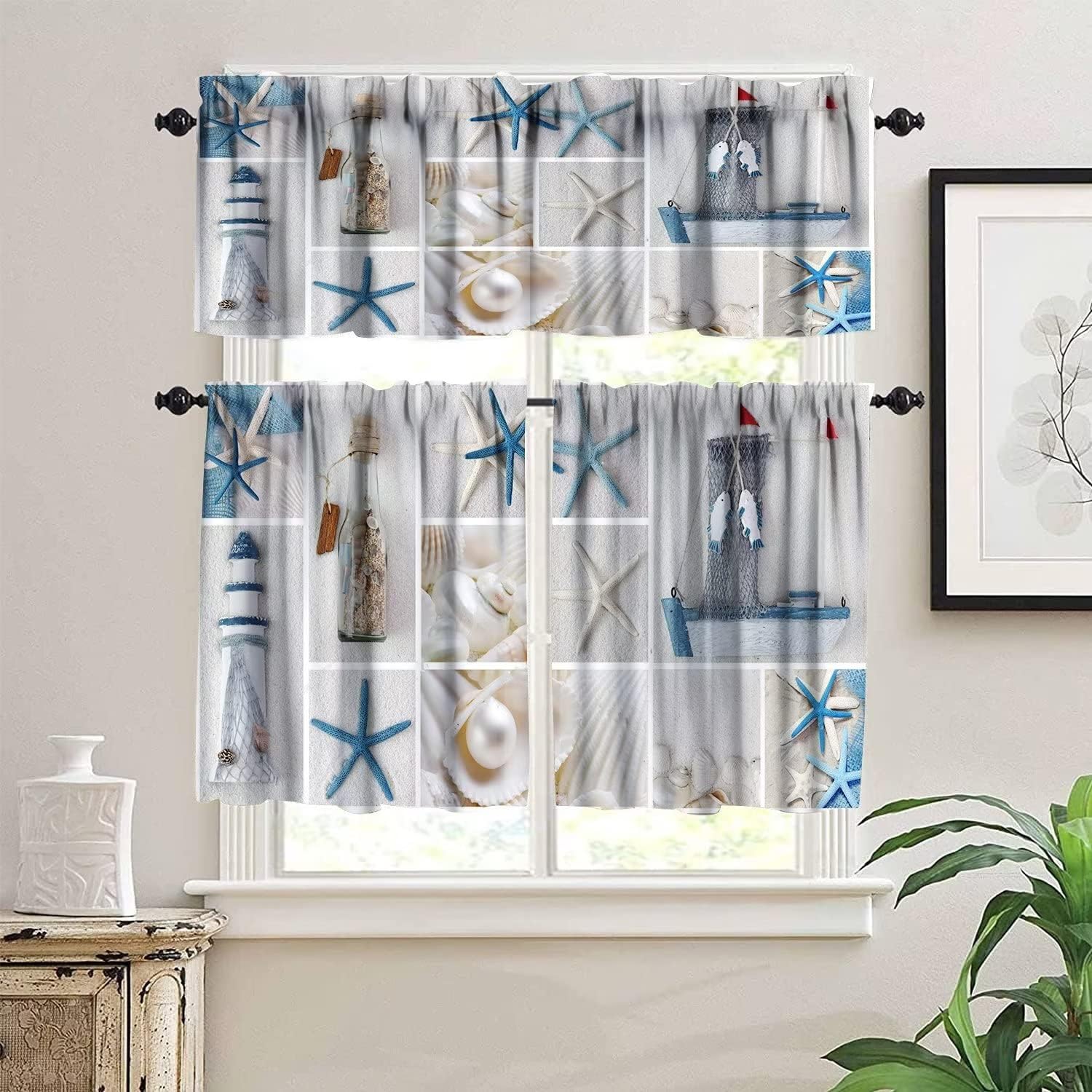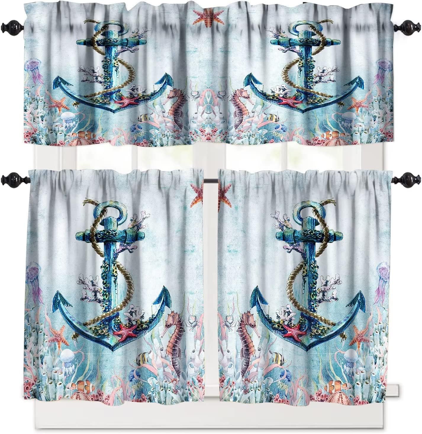 Frequently Questions Asked:What's the size of the tier and valance set?Package Including: 1 pcs Curtain valance measures 54 W x 18 L Inches. 2 pcs tier curtains, eaches curtain panel measures 27 W x 24 L Inches(Total 54 W x 24 L)/ each curtain panel measures 27 W x 36 L Inches(Total 54 W x 36 L). 3 pieces in one package.Are the curtains valance & tier total blackout?No, they are not total blackouts, but they can block most unwanted sunlight, and protect your privacy and your furniture.Main InformationPremium Material- High quality durable polyester fabric.- Cozy, comfortable, smooth.- Long lasting and no easy to tear.Exquisite Workmanship and Header Type- The valance and tier curtain set is given to stitching ensuring there is no loose threads and uneven hems/edges.- The curtain set of valance and tier rod pocket measures 3 inch fits 1.5" straight rods in the market that slides easily onto your curtain for quick installation. There is 1" header on the top of each valance and tier kitchen curtain, which can create an elegant atmosphere, give a vitalitive touch and add beauty to your half windows with a new look.Various Occasion DecorAn instant update to your window look, this 3-piece kitchen tier is otherworldly and matches any of your custom home styles, perfect for traditional, contemporary, glamour, shabby chic or farmhouse home decor. Perfect for kitchen, infant room, basement, bedroom, bathroom, living room, laundry room, studio and other windows. Of course, they are not just tier curtains for windows, they can also be used on closet, shelf or any places you want to put on for privacy protection.