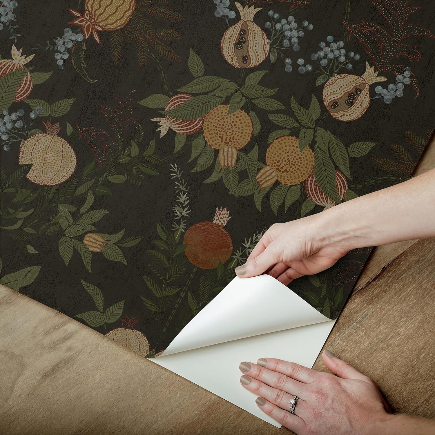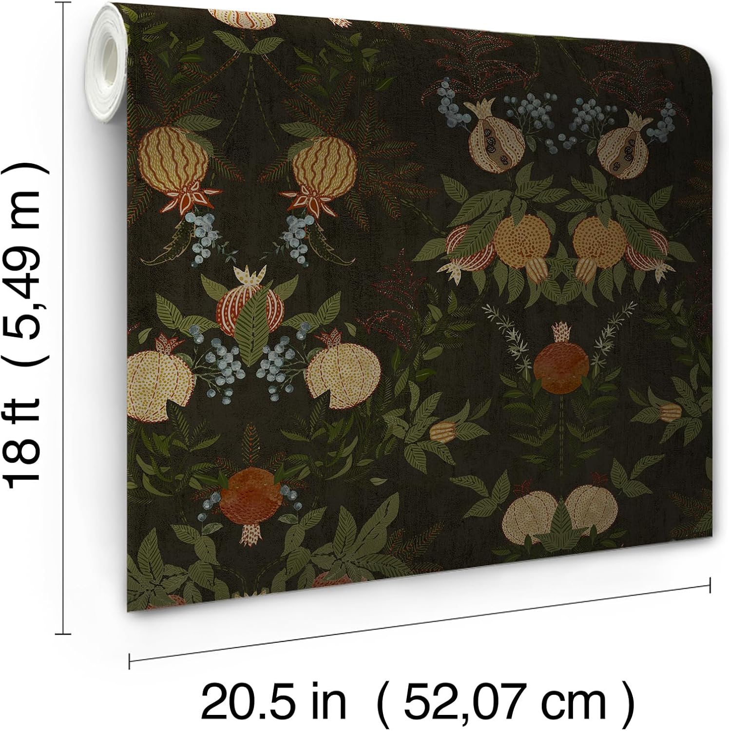 Delight in dramatic hues and gorgeous design with this peel and stick wallpaper from the Chris Loves Julia x WallPops collection. This painterly damask peel and stick NuWallpaper print features moody blue and orange berries and botanicals on a weathered cinder grey backdrop. Melograno Cinder Peel and Stick Wallpaper comes on one roll that measures 20.5 inches wide by 18 feet long.