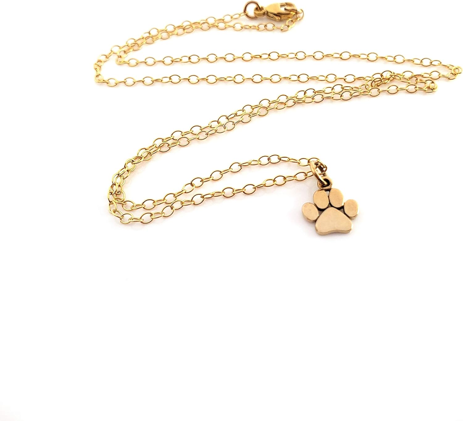 Celebrate the bond between you and your beloved pets with this Paw Print Charm Necklace. A finely detailed bronze paw print pendant (14mm x 10mm) hangs from a delicate 18-inch 14k gold filled cable chain, secured with a lobster clasp for easy everyday wear. Handcrafted in Raleigh, NC, this dainty necklace arrives on a premium jewelry card and includes gift-ready packaging—perfect for birthdays, holidays, or just because. Whether you’re honoring a current companion or remembering one who left paw prints on your heart, this necklace makes a meaningful keepsake.