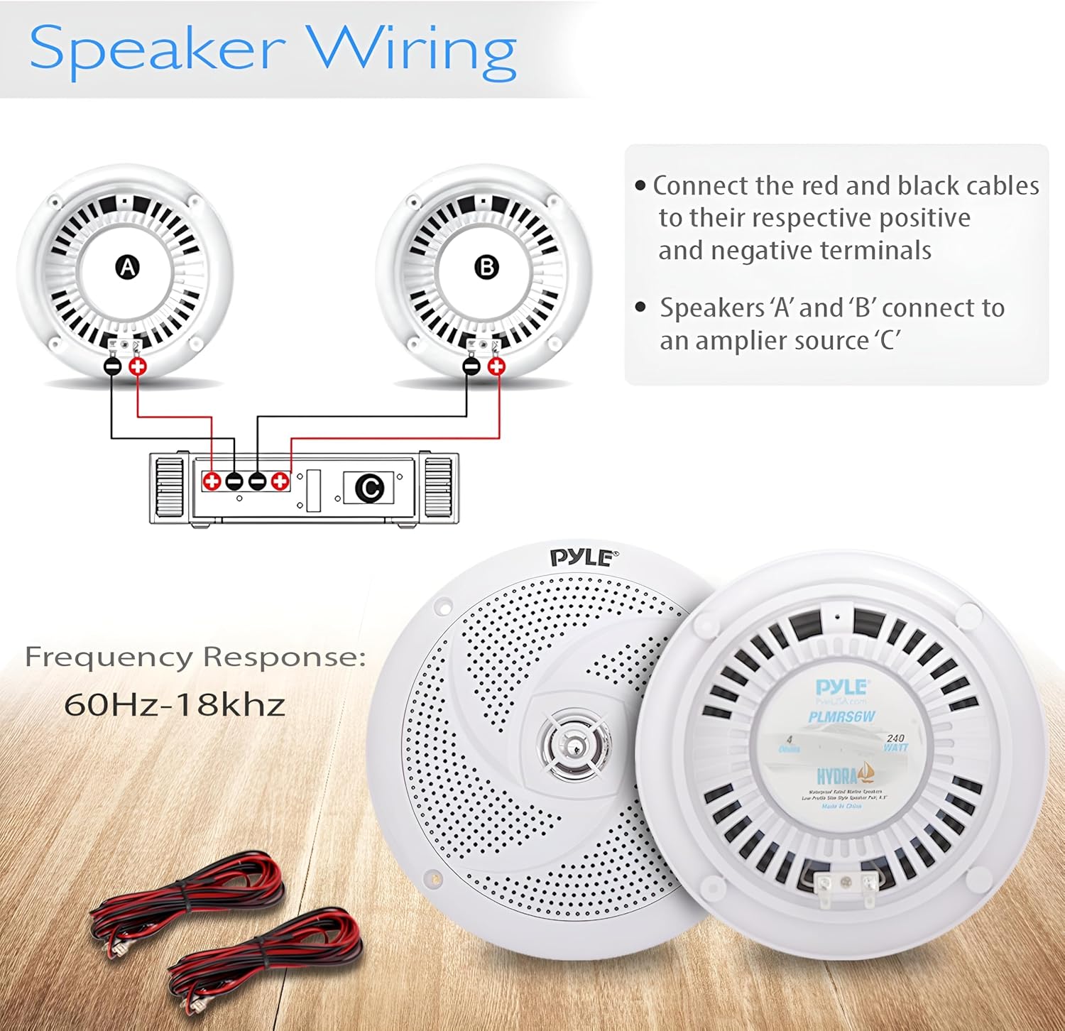 Pyle Marine Speakers - 6.5 Inch 2 Way Waterproof and Weather Resistant Outdoor Audio Stereo Sound System with 240 Watt Power and Low Profile Slim Style - 1 Pair - PLMRS6W (White)