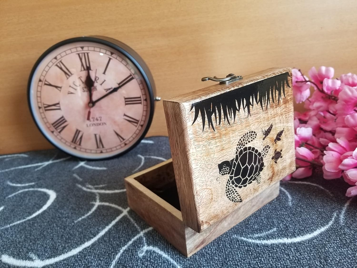 -Burnt Mango Wood - Using Sustainable Forest Resources. -Measures 5.75" x 4.75" x 2.5" outside dimensions -BEAUTIFUL & USEFUL: The rustic nature of the box will slowly & beautifully evolve, only to grow more appealing as the decades go by -Commonly used as jewelry box, trinket holder, storing Memorabilia, Lock Box, Memory Box, etc. -We are a small family US business and stand behind our product -Any questions are welcome