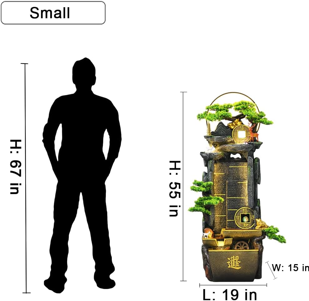 Transform your living space with our stunning Indoor Outdoor Water Fountain, available in two sizes: Small (55 inches) and Large (67 inches). This beautifully designed fountain features a harmonious blend of flowing water, vibrant LED lights, and lush greenery, creating a serene ambiance that enhances any environment.